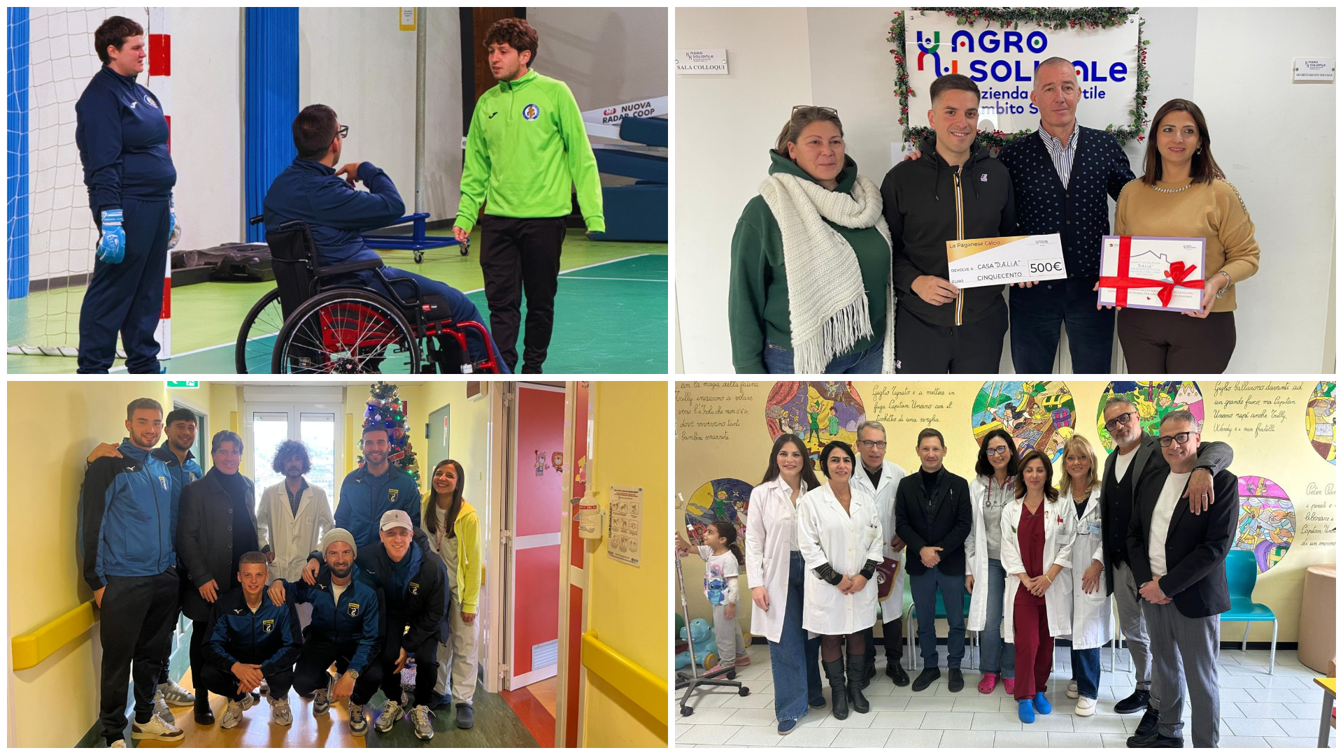 I giocatori del Piacenza in versione “Babbo Natale” hanno consegnato regali e momenti di felicità ai bambini ricoverati nei reparti di Neonatologia e Pediatria dell’Ospedale del centro emiliano. Un’iniziativa organizzata dai tifosi insieme a aziendauslpiacenza e all’associazione William Bottigelli. La Pistoiese ha festeggiato con tutta la filiera del club un “Natale Speciale” grazie alla partecipazione del team “special” orange. La squadra insieme allo staff tecnico e alla dirigenza, ha preso parte all’incontro promosso dalla Fondazione MAIC insieme alle principali realtà sportive del territorio. La Pistoiese ha triplicato l’impegno prendendo parte alla ventisettesima edizione di “Stelle nello Sport, un’asta benefica a sostegno della Fondazione Gigi Ghirotti, da anni impegnata nell’assistenza socio-sanitaria e nelle cure palliative per le persone più bisognose.
